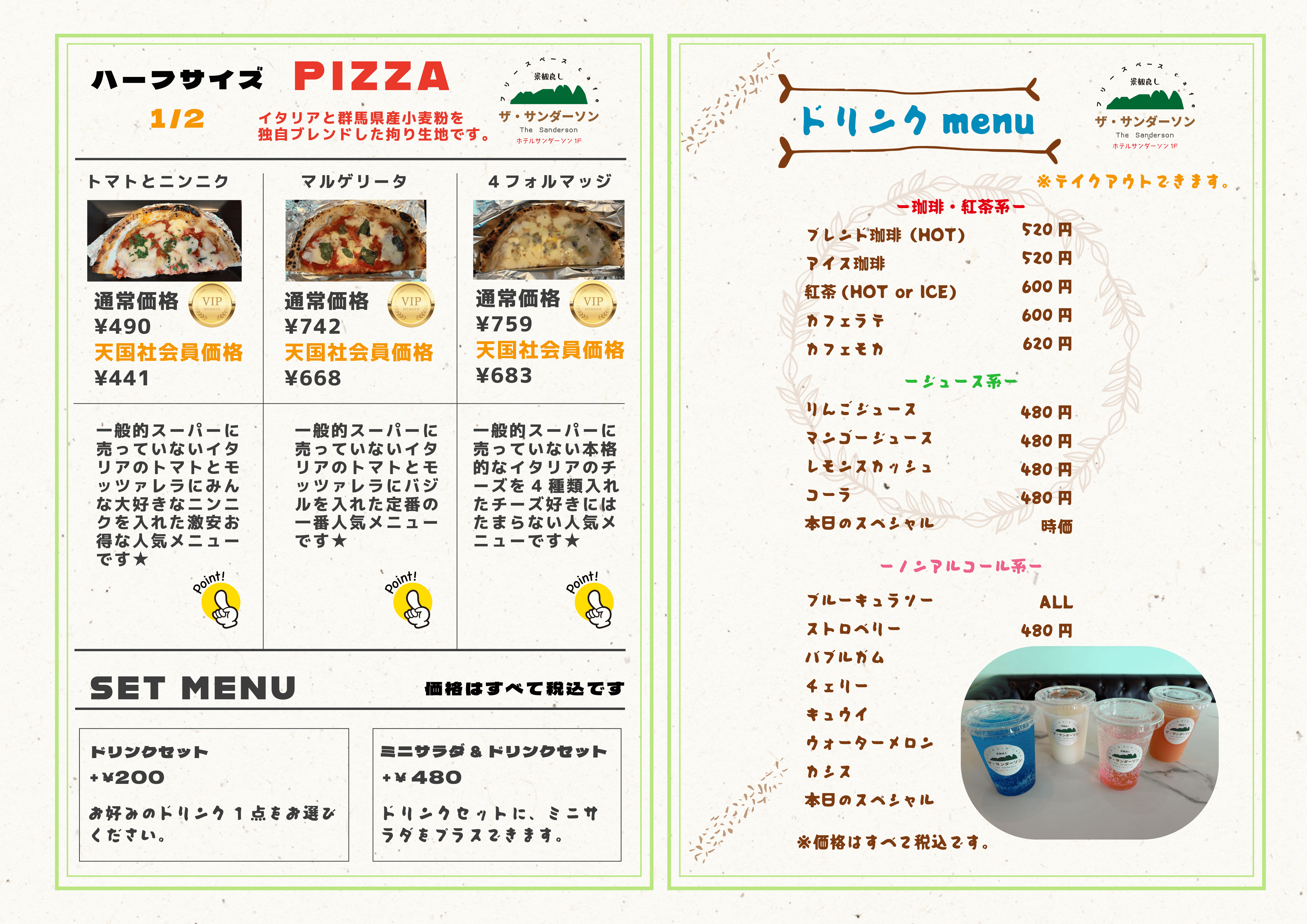 ドリンク入店のみならず人気のピザ・パスタ・その他の軽食等、wi-fi完備、充電可、会議室利用、イベント利用、ミニライブなど多目的にご利用可能となりましたのでお気軽にご相談いただければ幸いです。フード&ドリンクはメニューをご覧ください。