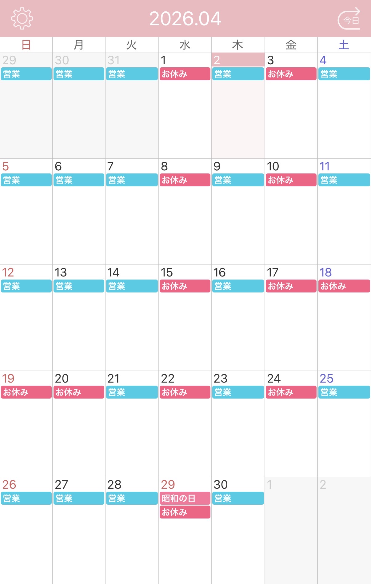 4月度営業日程